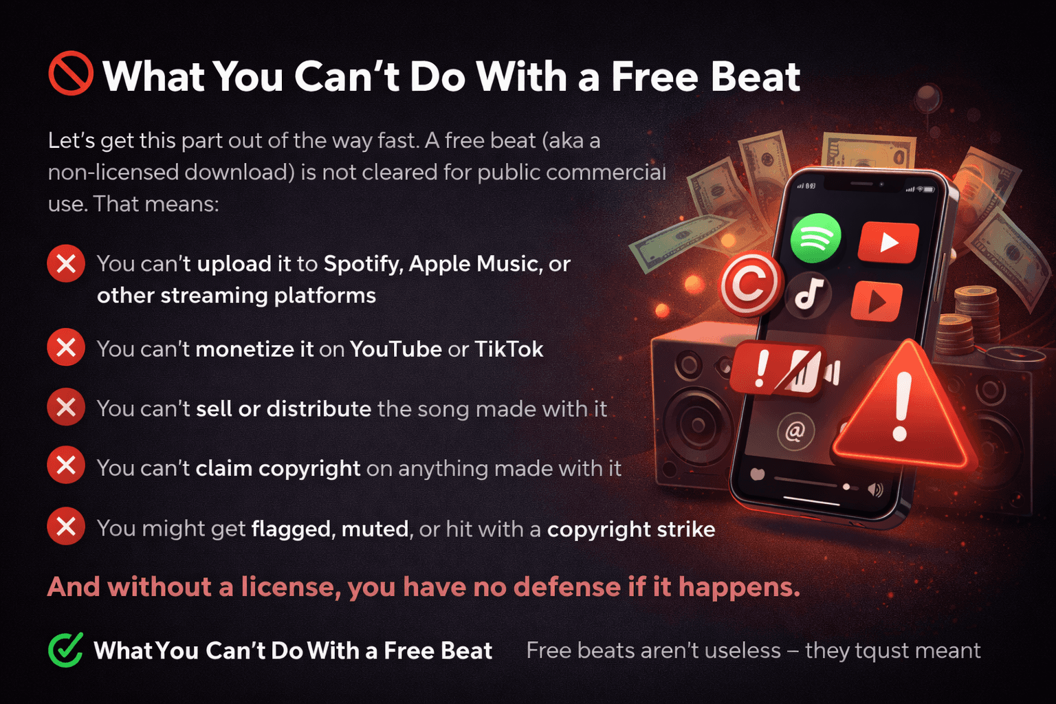 Let’s get this part out of the way fast. A free beat (aka a non-licensed download) is not cleared for public commercial use.